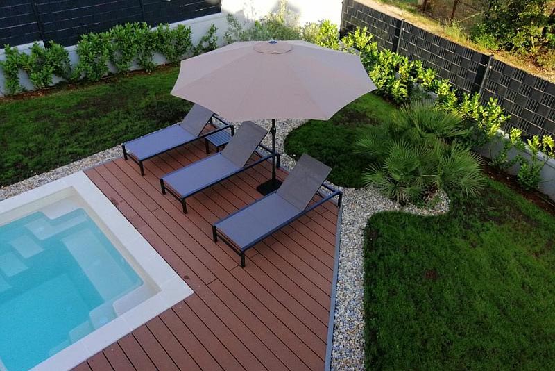 Sodobno zunanjo obliko dopolnjujeta dva kraka stopnic, ki se nahajata na eni od krajših stranic bazena, na drugi krajši stranici vgradnega bazena XL-Trainer pa se nahaja že prej omenjeni rob, ki je primeren za posedanje.